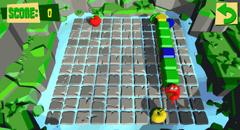 Boris can bite through his body anywhere his head is the same colour as his scales. Use the left and right arrow keys or A and D to turn, and try to keep Boris from running out of space!